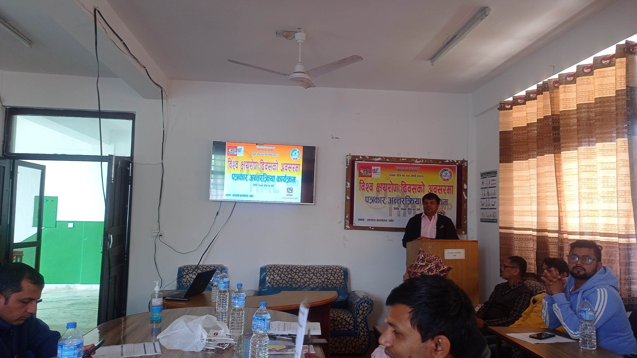 पर्वत । विश्व क्षयरोग दिवसका अवसरमा पर्वतमा स्वास्थ्यकर्मी र पत्रकारहरु बिच अन्तरक्रिया गरिएको छ । ‘हो हामी क्षयरोग अन्त्य गर्छौ’ भन्ने मुलनाराका साथ स्वास्थ्य कार्यालय पर्वतको आयोजनामा स्वास्थ्यकर्मी र पत्रकारहरु बिच अन्तरक्रिया गरिएको हो । स्वास्थ्य कार्यालय पर्वतका अनुसार पर्वतमा ४५ जना क्षयरोगका नयाँ बिरामी फेला परेका छन् । १३ जना महिला र ३२ जना पुरुषमा क्षयरोग भेटिएको जनाएको छ । गएको साउन यता ४५ जना क्षयरोगका विरामी फेला परेको पर्वत अस्पतालका डाक्टर दिपक रेग्मीले जानकारी दिनुभयो । रेग्मीले विरामीहरले नियमित रुपमा औषधी सेवन गरिरेहेका बताउँनुभयो । अघिल्लो आर्थिक बर्ष २०७८÷०७९ मा पर्वतमा ६७ जना क्षयरोगका बिरामी फेला परेका थिए । अघिल्लो आर्थिक बर्षभन्दा यो बर्ष क्षयरोगका बिरामीको संख्यामा कमी आएको रेग्मीले बताउँनुभयो ।