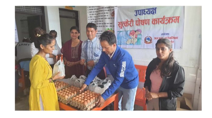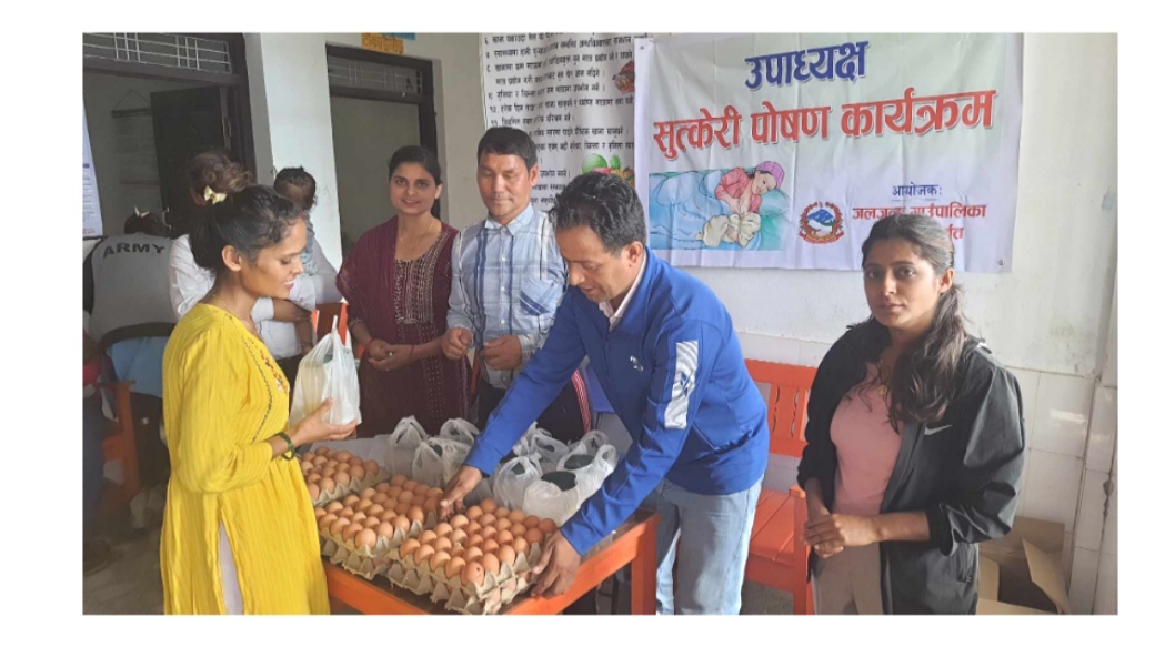चालु आर्थिक वर्षमा चार लाख बजेट विनियोजन गरिएको ‘उपाध्यक्ष सुत्केरी पोषण कार्यक्रम’मार्फत संस्थागत सुत्केरी भएकालाई घ्यू र अण्डा वितरण गरिएको उपाध्यक्ष दीपक आचार्यले जानकारी दिए । “विसं २०७९ साउनदेखि यही असार मसान्तसम्म स्वास्थ्य संस्थामा सुत्केरी हुनेलाई दुई क्यारेट अण्डा र एक माना घ्यू वितरण गर्ने कार्यक्रम छ”, उनले भने, “पालिकाका–१, २, ३, ४, ७, ८ र ९ का करिब दुई सय सुत्केरीलाई घ्यू र अण्डा सम्बन्धित वडामा पुगेर वितरण गरिएको हो, वडा नं ५ लेकफाँट र ६ शालिजामा आज वितरण गर्ने कार्यक्रम छ ।”