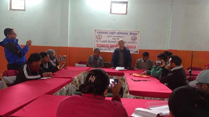 पर्वत । पर्वतको कुश्मा नगरपालिका ३ दुर्लुङमा राधाचन्द्र स्मृति प्रतिष्ठानले १६ औँ राधाचन्द्र स्मृति दिवश मनाउने तयारी गरेको छ । आज पत्रकार सम्मेलन गर्दै आयोजकले स्मृति दिवशमा गरिने कार्यक्रमको बारेमा जानकारी दिएको छ । आयोजकले कार्यक्रमको तयारी धमाधम गरिरहेको जानकारी दिएको छ । स्मृति प्रतिष्ठानमा प्रमुख आतिथीको रुपमा गण्डकी प्रदेशका मुख्यमन्त्री सुरेन्द्रराज पाण्डेलाई निम्ताएको छ । दिवशको अवसरमा शहिदहरुको सम्मान, सांस्कृतिक कार्यक्रम तथा राधाचन्द्रको जीवनीको बारेमा जानकारी दिने जनाईएको छ ।