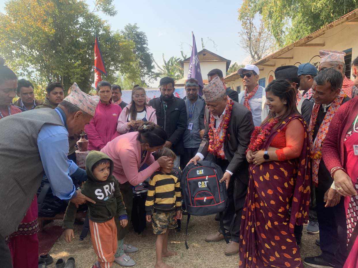 विद्यालयमा अध्ययनरत करिब २८ जना विद्यार्थीहरुलाई कपि,कलम झोला सहितका शैक्षिक सामाग्री वितरण गरेको राष्ट्रिय लोक तथा दोहोरी गित प्रतिष्ठान नेपाल जिल्ला शाखा पर्वतका अध्यक्ष पुजा कार्की शर्माले जानकारी दिनुभयो । कार्कीले आफुहरुले समाजमा सकारात्मक सन्देश दिन विगतदेखि नै सामाजिक कार्यहरु गर्दै आइरहेको र सोही अनुरुप यो पनि एउटा कदम भएको बताउँनुभयो । उहाँले शैक्षिक गुणस्तर तथा पढ्नुपर्छ भन्ने भावनालाई प्रोत्साहन गर्न शैक्षिक समाग्री वितरण गरेको बताउँनुभयो ।