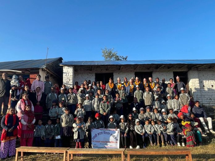 पर्वत — पर्वतको महाशिला गाउँपालिका वडा नं ६ फलामखानीमा रहेको फलामखानी आधारभुत विद्यालयमा न्यानो कपडा वितरण गरिएको छ ।