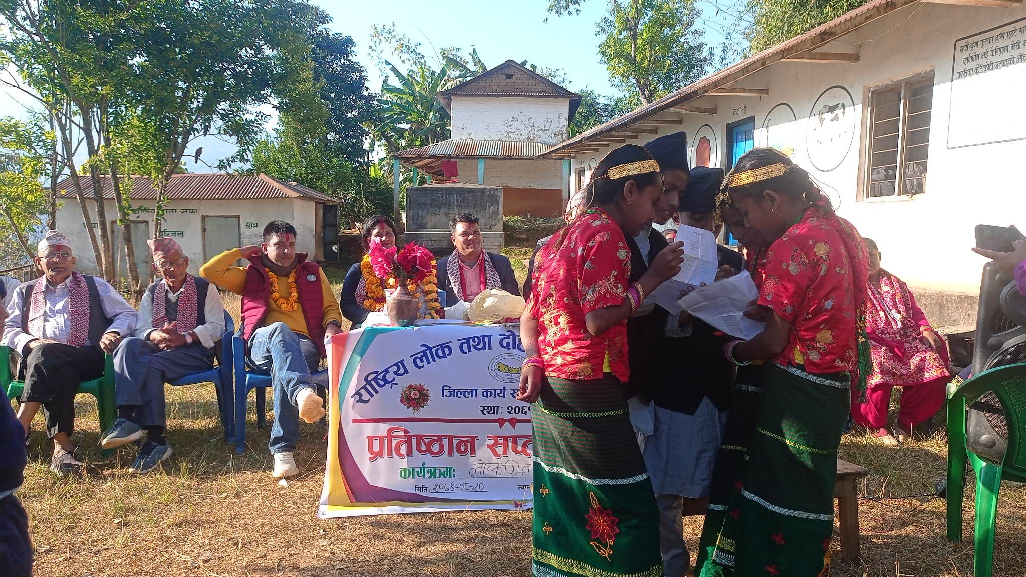 कार्यक्रममा कुश्मा नगरपालिका वडा नं ९ का वडासदस्य प्रकाश श्रेष्ठ, प्रतिष्ठानका सल्लाहकार कृष्ण अखेली, लोक तथा दोहोरी गित प्रतिष्ठान गण्डकी प्रदेशका द्धितिय उपाध्यक्ष आरसी पौडेल, जनप्रिय आधारभूत विद्यालयका प्रअ एवम प्रतिष्ठानका सहकोषाध्यक्ष कमला देवी शर्मा, रेडक्रस उपशाखा कटुवाचौपारीका सभापति दडपाडी पौडेल, प्रतियोगितामा सहभागि विद्यालयहरुको तर्फबाट शिक्षक पार्वती उपाध्य लगायतले मनतव्य राख्नुभएको थियो । कार्यक्रममा लोक दोहोरी गायक एवम प्रतिष्ठानका संस्थापक अध्यक्ष चित्र सागर श्रेष्ठ, सह—सचिव एवम गायक सुदिप क्षेत्री लगायतले सांगितिक प्रस्तुति राख्नुभएको थियो भने स्थानिय पार्वती आमा समुहले विशेष रत्यौली गित प्रस्तुत गरेको थियो ।