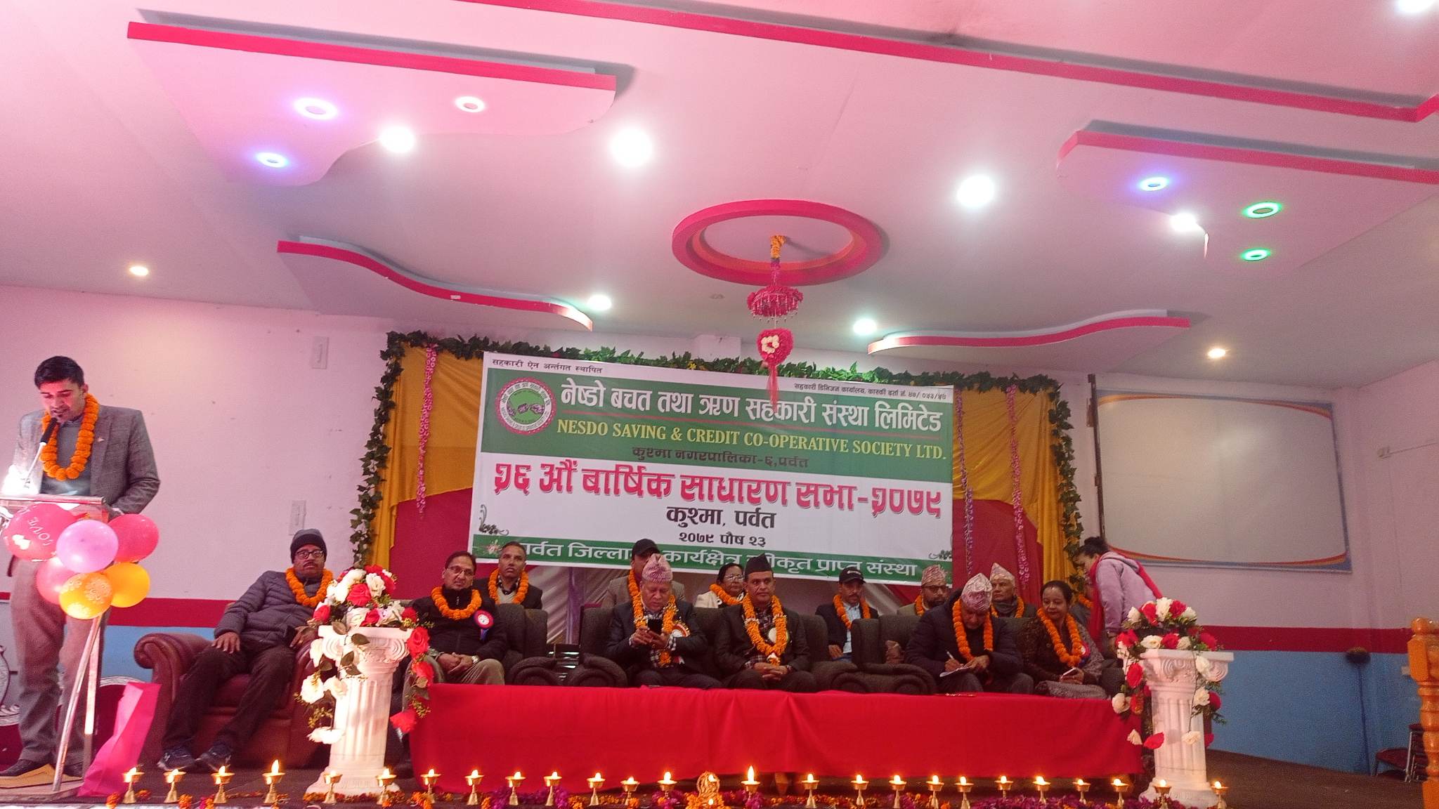 साधारण सभा नेष्डो वचत तथा ऋण सहकारी संस्था लिमिटेडका अध्यक्ष उत्तम प्रसाद अधिकारीको अध्यक्षता, पुर्व अध्यक्ष एवम् लेखा समितिका संयोजक सावित्री खत्री क्षेत्रीको स्वागत एवम् प्रवन्धक कृष्ण पौडेलको सञ्चालनमा सम्पन्न भएको थियो ।