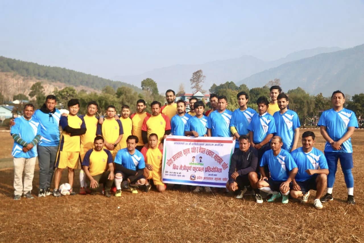 पर्वत । पर्वत अस्पताल र नेपाल पत्रकार महासंघबीच मैत्रीपुर्ण फुटबल प्रतियोगिता सोमवार कुश्मामा सम्पन्न भएको छ ।